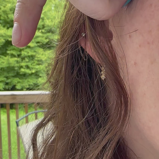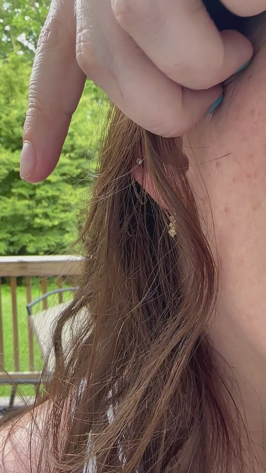 4 tiny cz dangling from a 14k gold-filled stud. super lightweight!